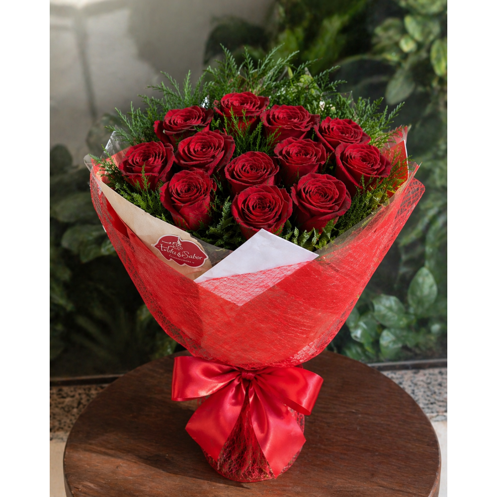 Lindo buquê de Rosas vermelhas nacionais que combina a beleza e perfume das rosas em um arranjo harmônico e elegante.