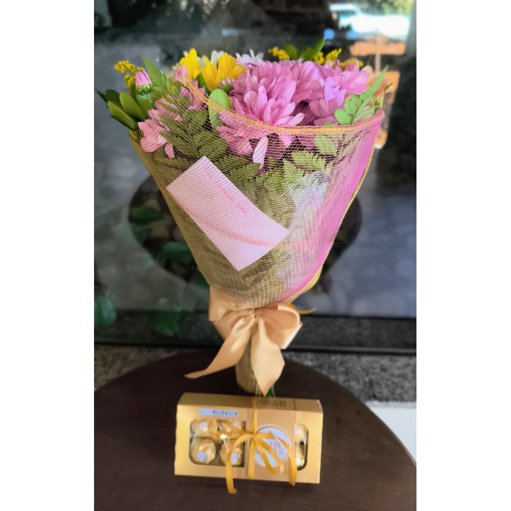 Mini Buquê composto por Flores do campo e complementos,
