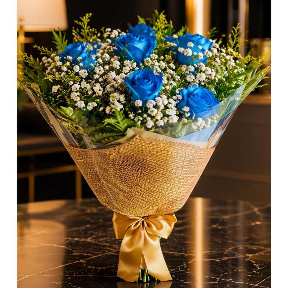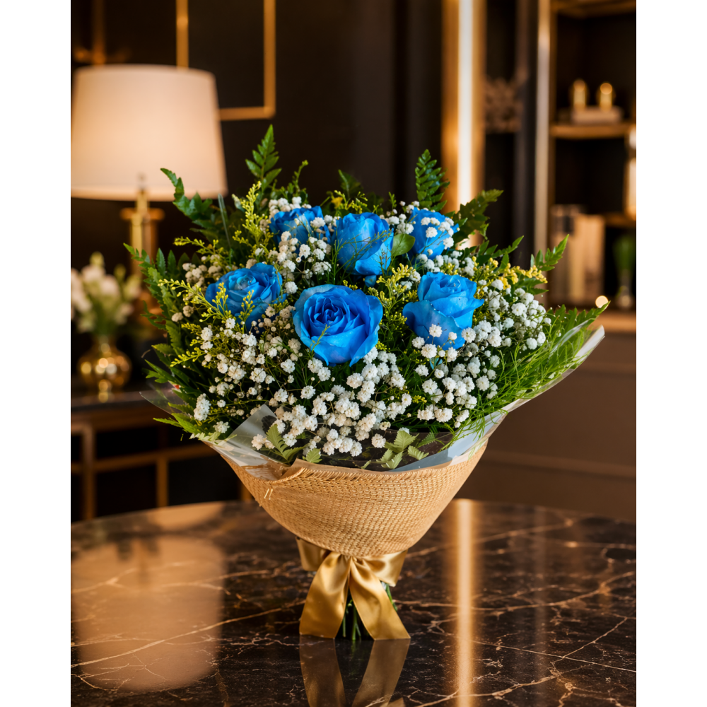 Buquê 6 Rosas Naturais Azuis