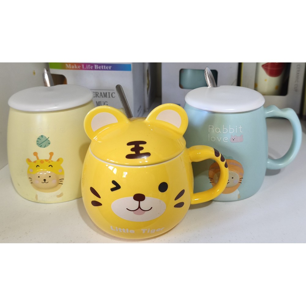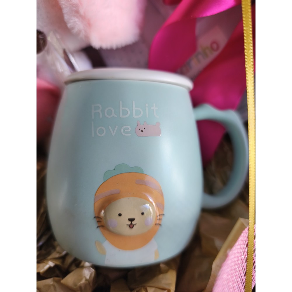 Caneca de cerâmica especial com tampa e colher, tema infantil (a sua escolha pelo WhatsApp),